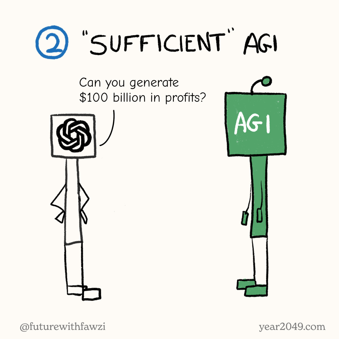 “[…] the board determines when we've attained AGI. Again, by AGI we mean a highly autonomous system that outperforms humans at most economically valuable work. Such a system is excluded from IP licenses and other commercial terms with Microsoft, which only apply to pre-AGI technology.”